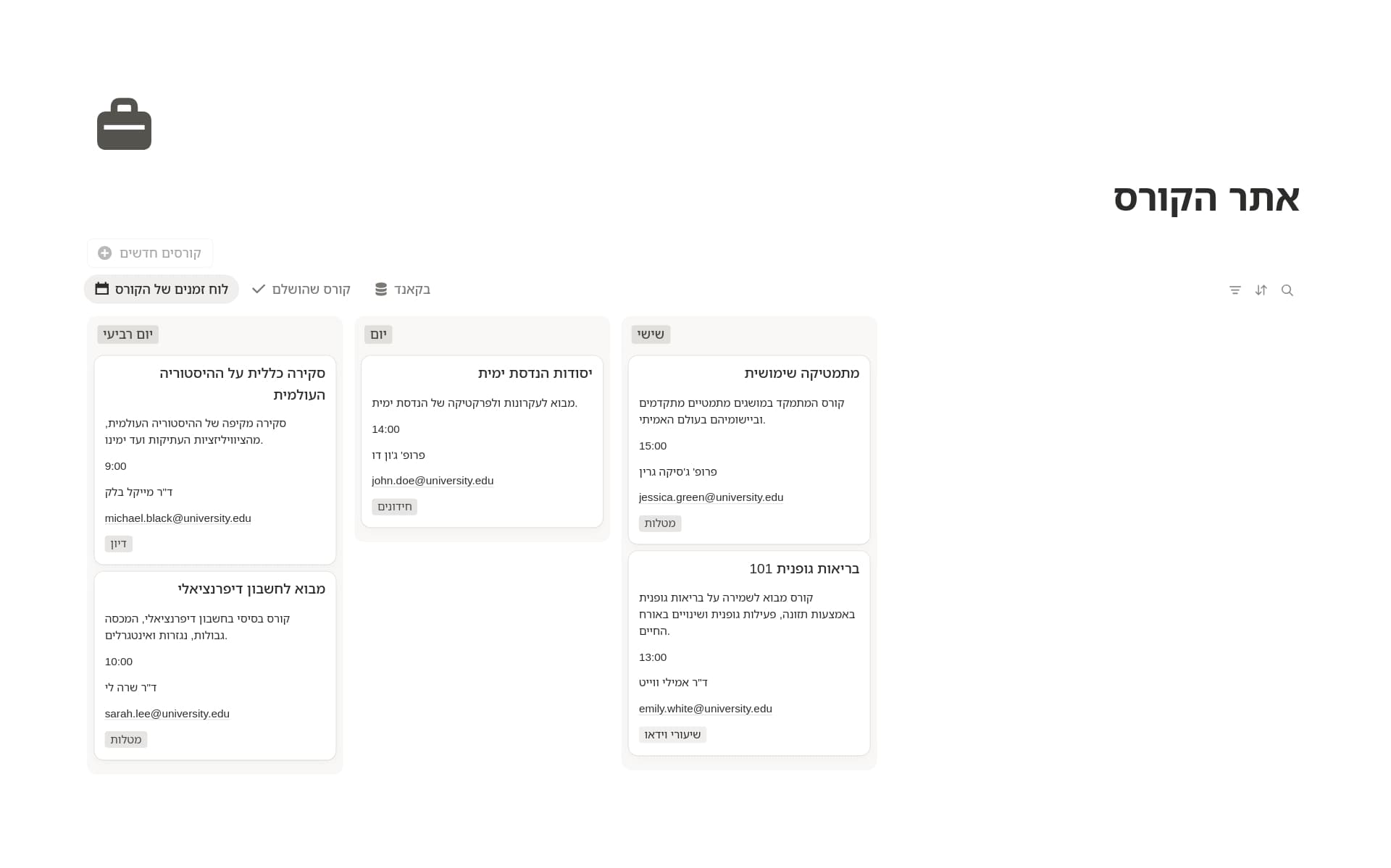 לוחות בקרה לסטודנטים